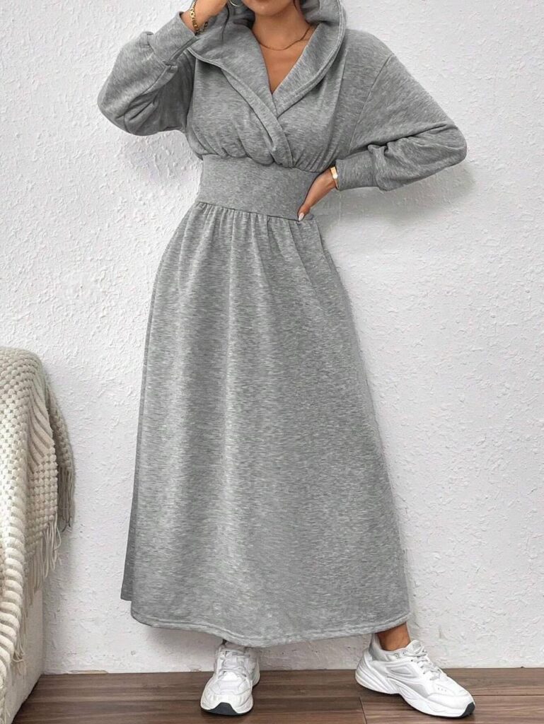 فستان نسائي طويل سلفر تصميم جديد مع اكمام طويله تصميم شتائي