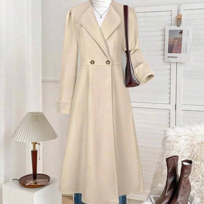 كوت نسائي طويل هاڤ وايت تصميم مزدوج شتائي طويل